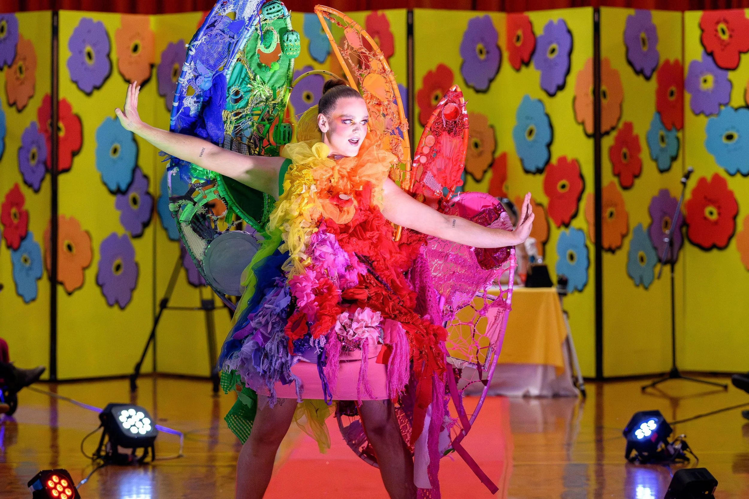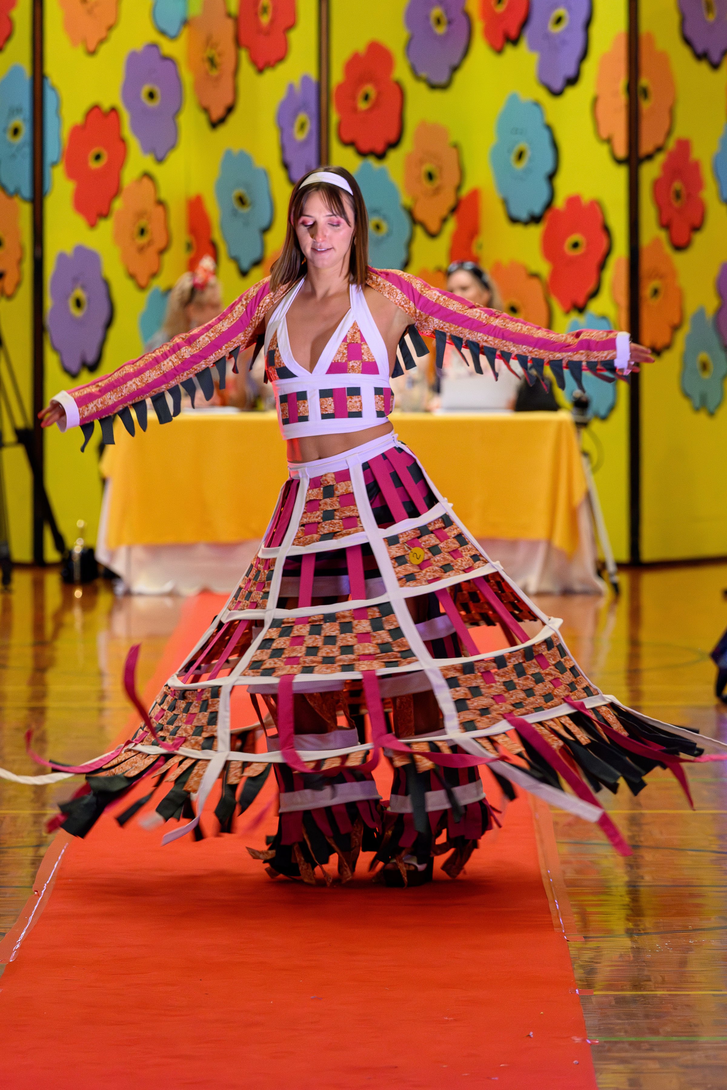 Congratulations Niamh, you creatively transformed ‘Oppy’ shop pre-loved sheets and doona covers into sustainable art fashion statements. Your whimsical and well-constructed outfit is a delightful interplay of movement and imagination. Your confidence on the catwalk highlighted your passion for weaving, construction, history, and experimental fashion. The judges were super impressed!